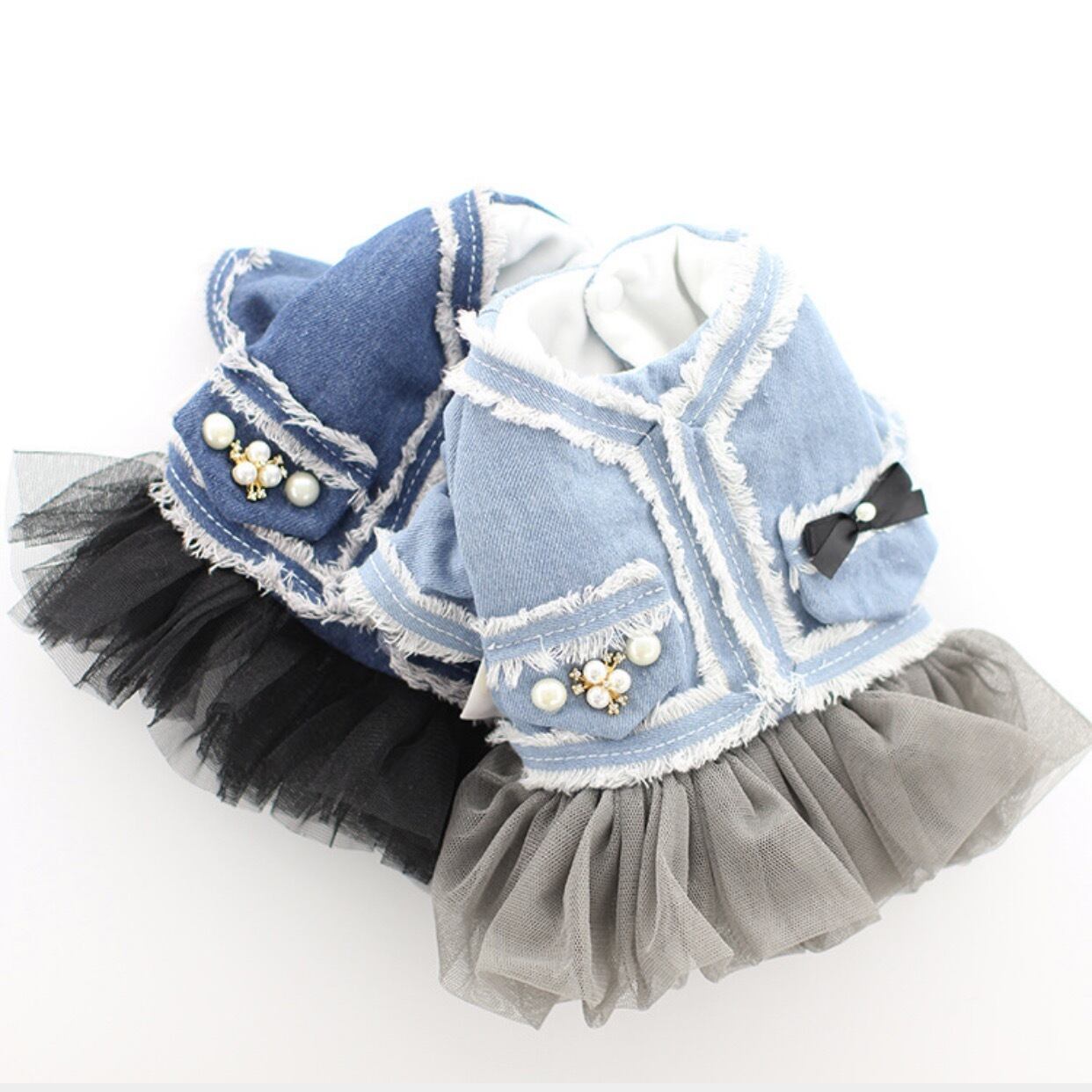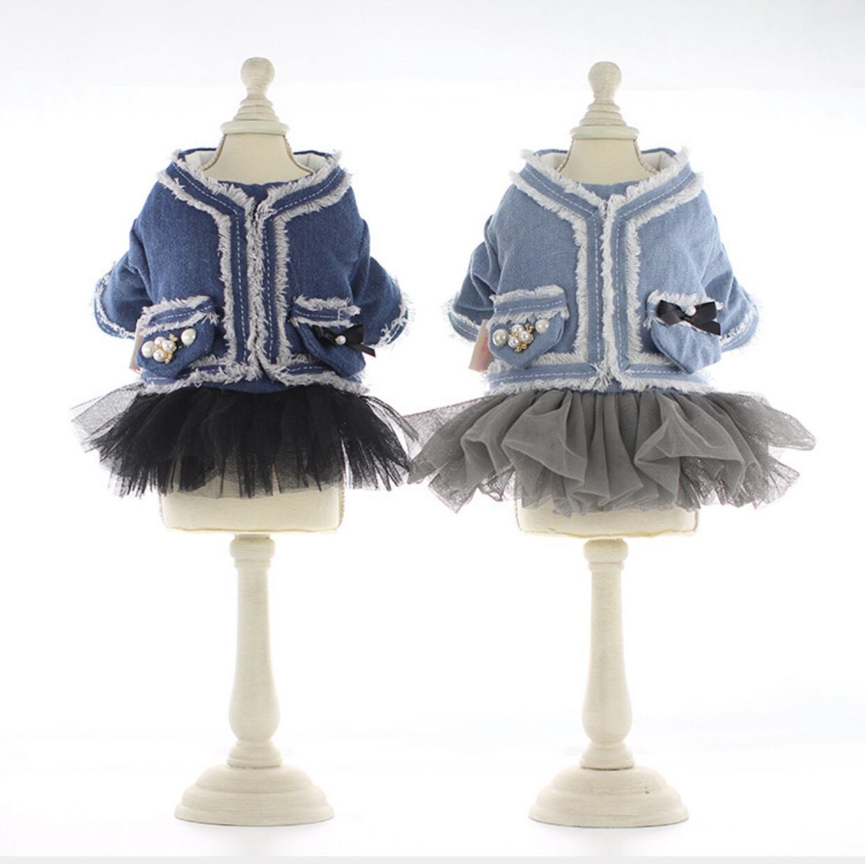 ビジュー・パール付き、フリンジにチュールスカートがとってもエレガントなデニム