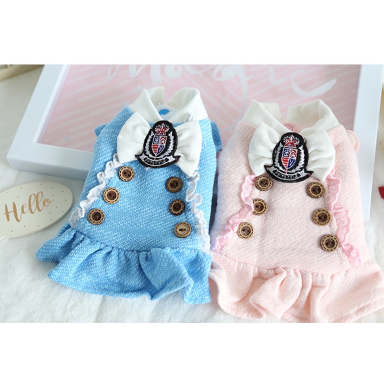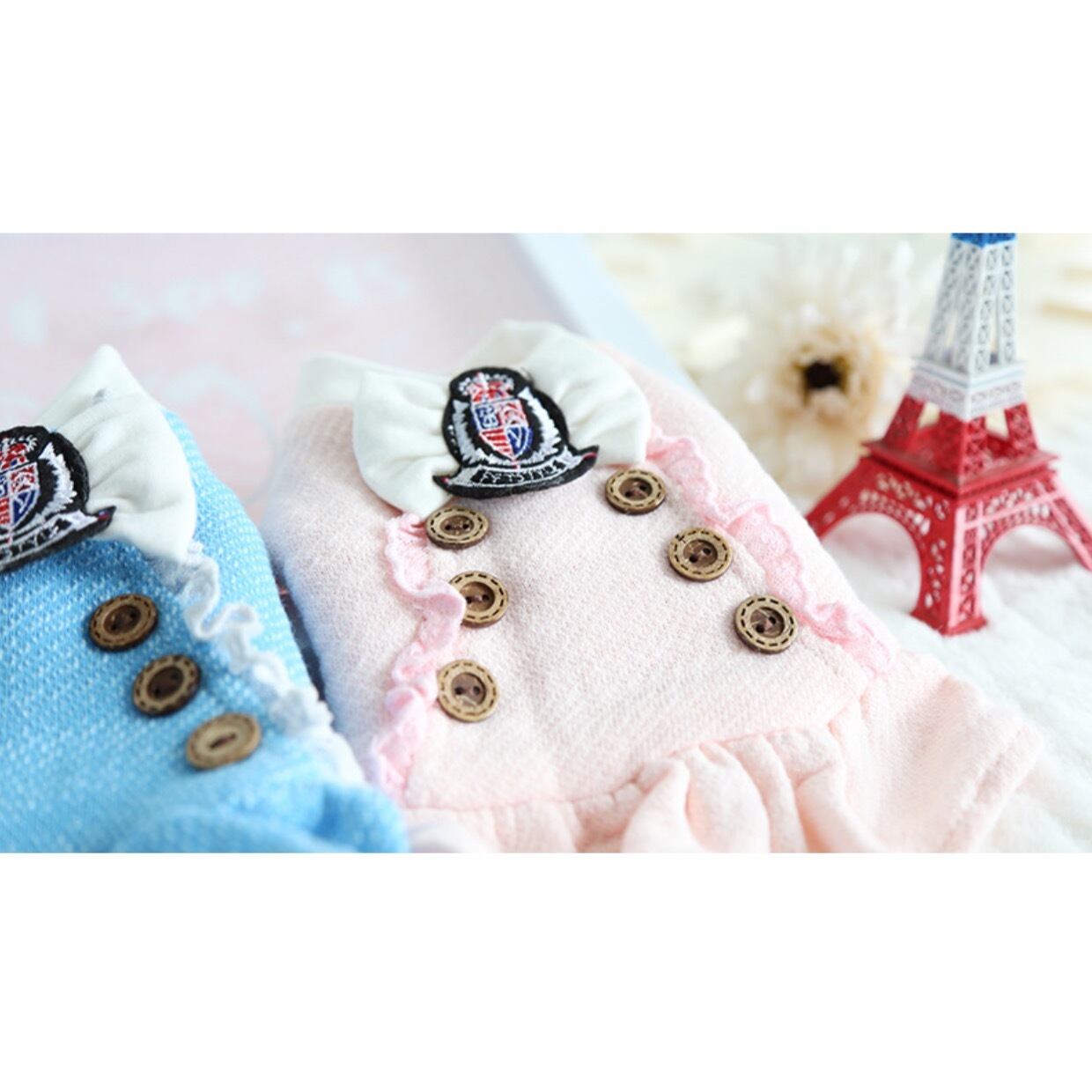 冬のマリンルックは大きなボタンやエンブレムがカッコよく、白いフリルとレースがついた、甘辛MIXのワンピースです。