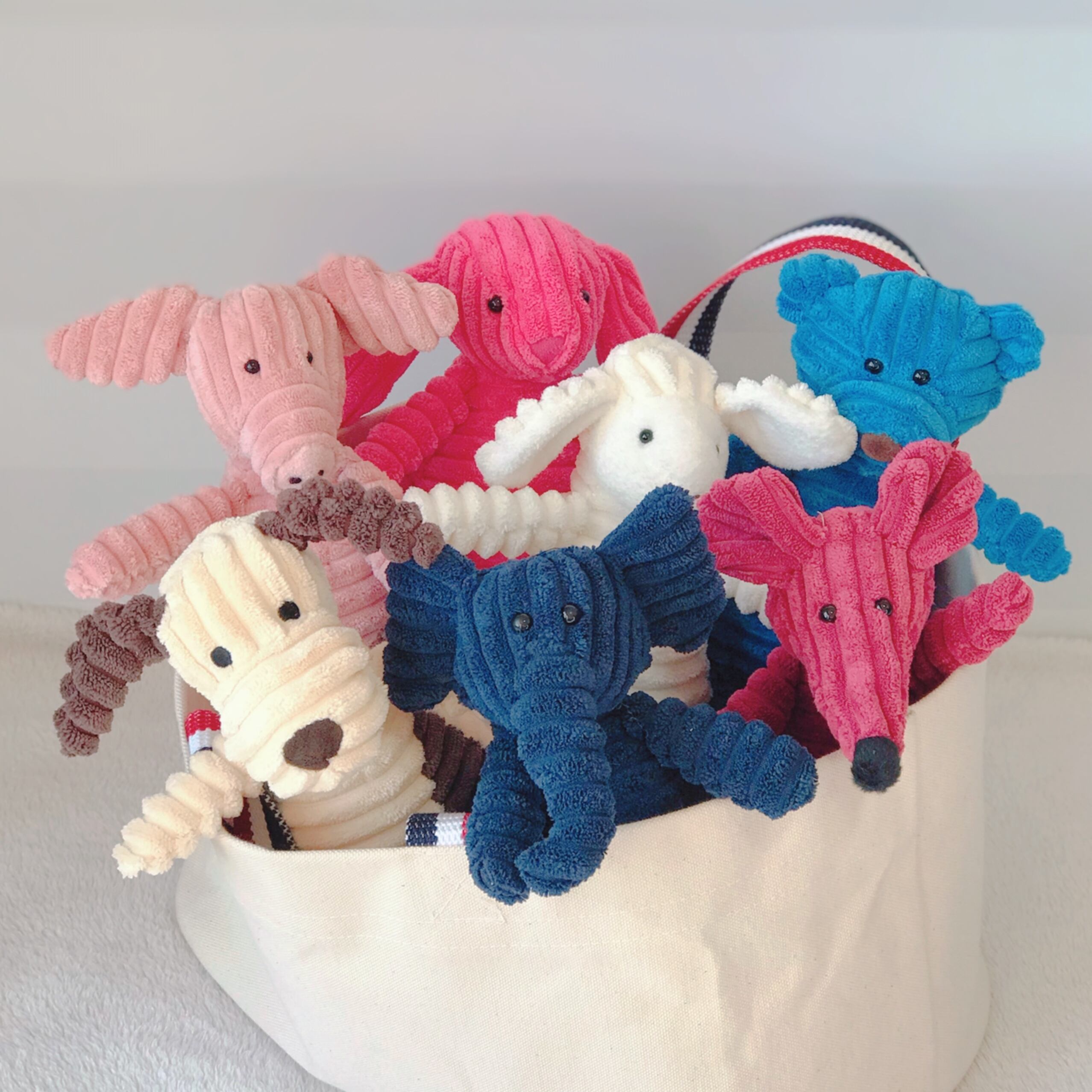 コーデュロイの生地を使用したお洒落な仕上がりで、ぬいぐるみとしても十分な存在感があります。