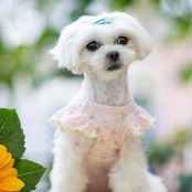 小さな小花柄のシャーリングニットはとても着やすく、動きやすい素材